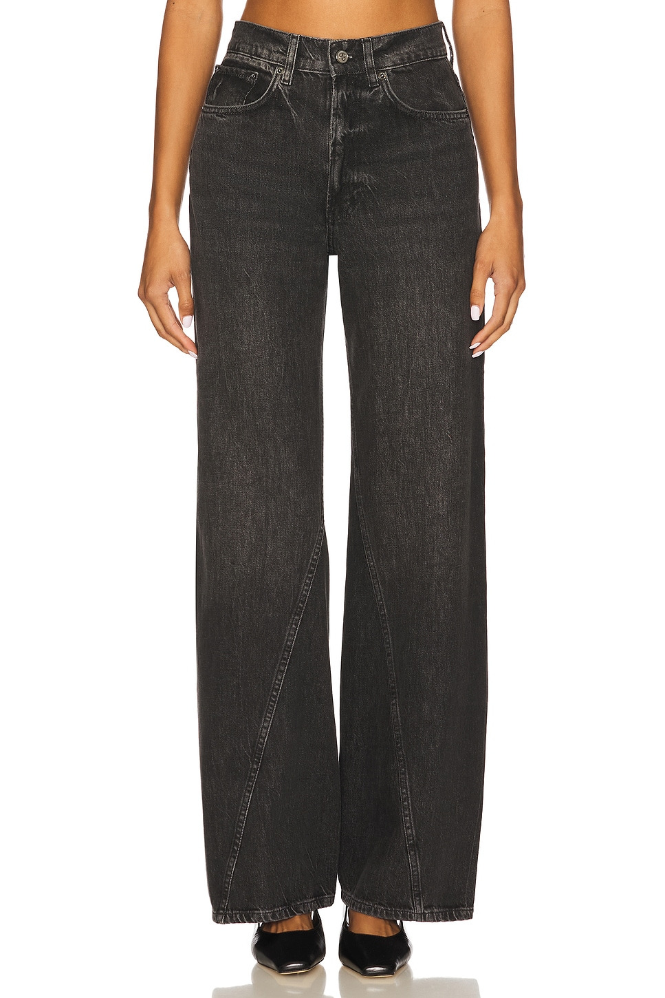 - 100% cotton - Made in Turkey - Machine wash - Zip fly with button closure.5 pocket styling - Asymetric seam design - Leg opening measures approx 21" - Revolve Style No. ANIN-WJ102 - Manufacturer Style No. A-06-11246-WBL4