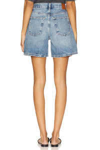 - Self: 100% cotton Lining: 67% organic cotton 22% recycled lyocell 11% recycled cotton - Machine wash - Zip fly with button closure.5-pocket design - Heavy whiskering and fading detail - Midweight denim fabric - Shorts measure approx 16" in length - Revolve Style No. ANIN-WF54 - Manufacturer Style No. A-05-11428-WHD65