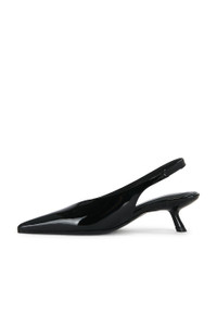 - Patent leather upper with leather sole - Sling-back styling - Leather footbed and lining - Pointed toe with slanted heel - Approx 50mm/ 2 inch heel - Revolve Style No. ANIN-WZ157 - Manufacturer Style No. A-14-11313-BLK1