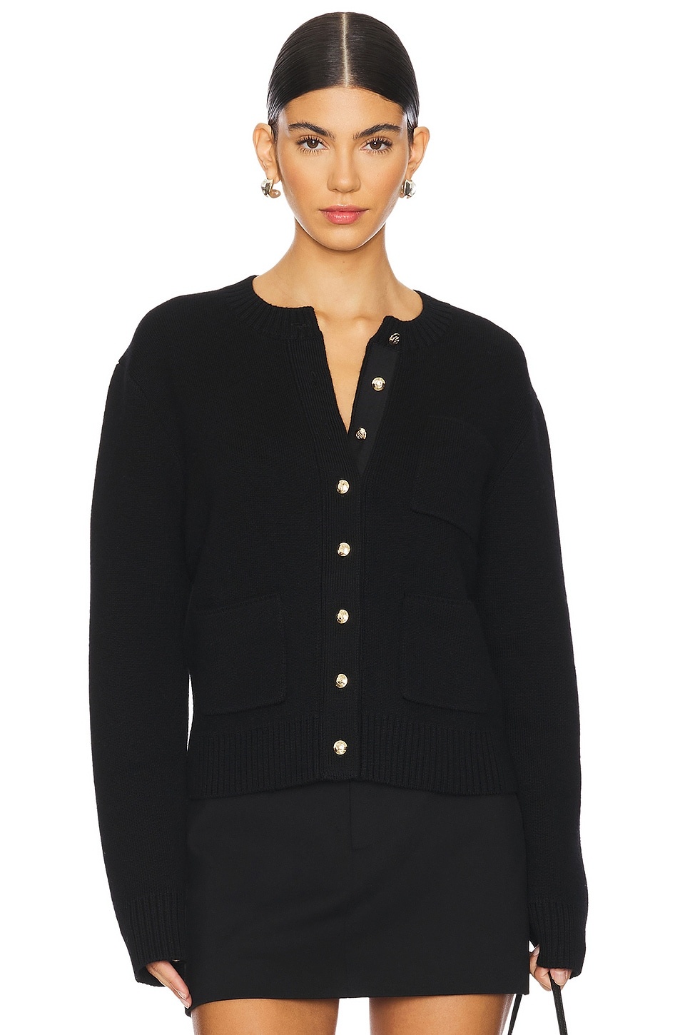 - 90% merino wool 10% cashmere - Made in China - Hand wash - Front button closure.3-pocket design - Ribbed cuffs, hem and neckline - Midweight knit fabric - Revolve Style No. ANIN-WK200 - Manufacturer Style No. A-09-10172-BLK26