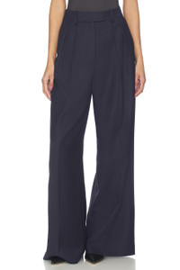 - Self: 52% polyester 48% wool Lining: 100% polyester - Machine wash - Zip fly with dual hook and bar closure - Side seam pockets - Back faux welt pocket - Pleated design - Heavyweight twill fabric.26" at the leg opening - Revolve Style No. ANIN-WP121 - Manufacturer Style No. A-03-10389-NYA34