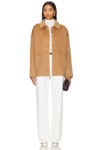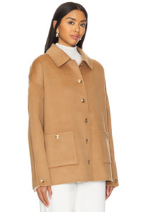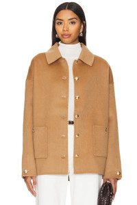 - 90% wool 10% cashmere - Made in China - Dry clean only - Front button closure - Front pockets with button closure - Buttoned cuffs - Midweight gabardine fabric - Revolve Style No. ANIN-WO186 - Manufacturer Style No. A-01-10120-BWN17
