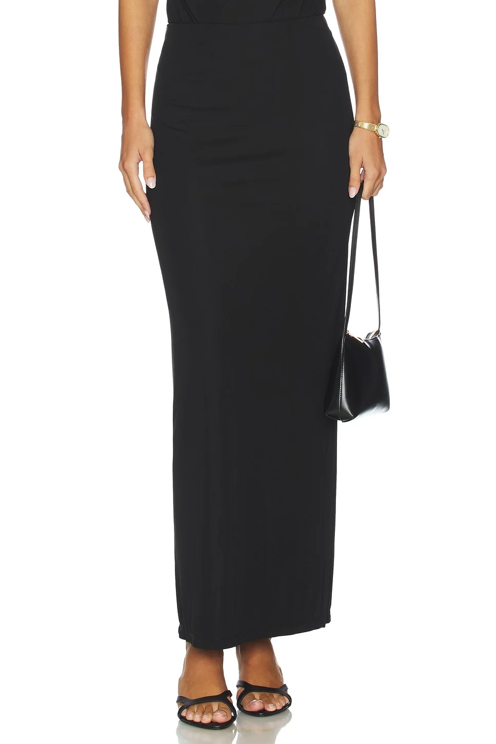 - 94% viscose 6% spandex - Machine wash - Unlined - Pull-on styling - Elasticized waistband - Midweight jersey fabric - Item not sold as a set - Skirt measures approx 40" in length - Revolve Style No. ANIN-WQ73 - Manufacturer Style No. A-04-11279-BLK26
