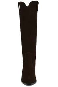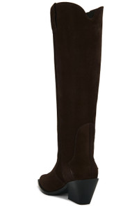 - Suede upper with leather sole - Pull-on styling - Leather footbed and lining - Dual side pull-tabs - Pointed toe with wooden block heel - Approx 70mm/ 2.75 inch heel Approx 356mm/ 14 inch shaft Opening measures approx 14.13" in circumference - Revolve Style No. ANIN-WZ164 - Manufacturer Style No. A-14-4142-000-DBN1