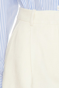 - Self: 91% viscose 8% polyester 1% elastane Lining: 100% polyester - Hand wash - Zip fly with double hook and bar closure - Side seam pockets - Back faux welt pockets - Pleated design - Midweight twill fabric - Shorts measure approx 15" in length - Revolve Style No. ANIN-WF53 - Manufacturer Style No. A-05-11226-CAE6