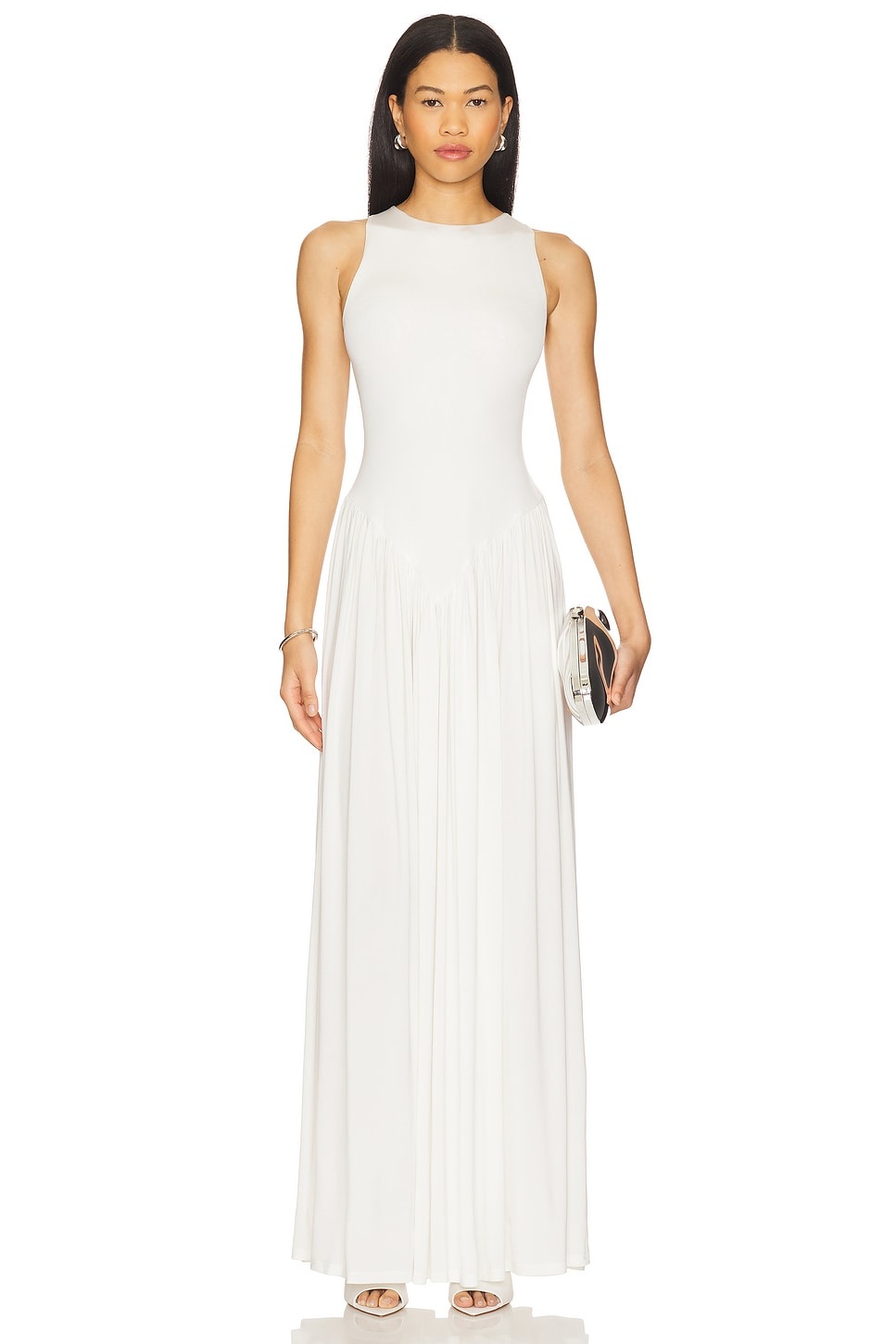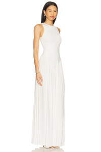 - 90% viscose 10% elastane - Dry clean only - Partially lined - Pull-on styling - Pleated skirt - Heavyweight slinky jersey fabric - Garment is made with a semi-sheer fabric, undergarments can show through - Revolve Style No. ABER-WD63 - Manufacturer Style No. SS2504