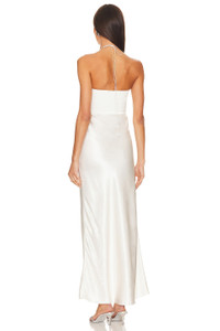 - 70% viscose 30% polyester - Made in Ukraine - Dry clean only - Unlined - Hidden side zipper closure - Unpadded underwire cups Halterneck tie closure - Quilted fabric bodice with satin skirt - Neckline to hem measures approx 49" in length - Revolve Style No. ABER-WD32 - Manufacturer Style No. PF2308