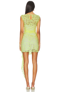 - Lace textile - Imported - Dry clean recommended - Fully lined with detachable and adjustable slip - Hidden side zip with back button loop closure - Front draped fabric accent - Midweight lace fabric - Revolve Style No. AUAR-WD50 - Manufacturer Style No. 50.65.YLA2