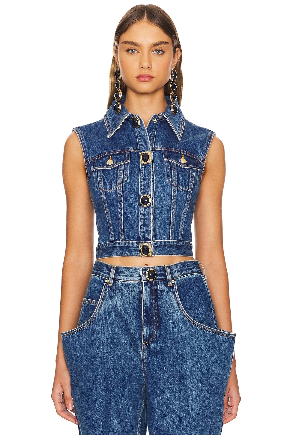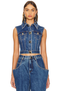 GEMSTONE BUTTON DENIM GILET