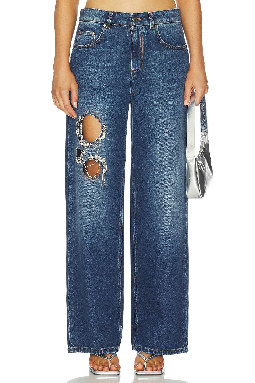 CRYSTAL CHAIN CUTOUT RELAXED JEAN