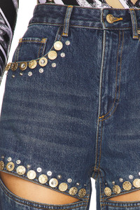 CRYSTAL BUTTON STUDDED SLIT JEAN