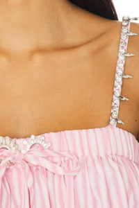 - 50% cotton 50% polyester - Hand wash - Unlined - Pull-on styling - Crystal embellished shoulder straps and front bow detail - Lightweight poplin fabric - Revolve Style No. ARRE-WD6 - Manufacturer Style No. PF25AWDR0149FA01