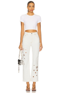 CRYSTAL GROMMET STRAIGHT LEG JEAN