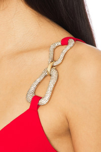 - 67% rayon 28% nylon 5% elastane - Made in China - Hand wash - Unlined - Hidden back zipper closure - Adjustable shoulder straps with rhinestone embellished hardware - Ponte jersey fabric - Revolve Style No. ARFE-WD159 - Manufacturer Style No. RS25AWDR0115FA01