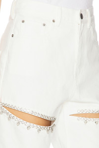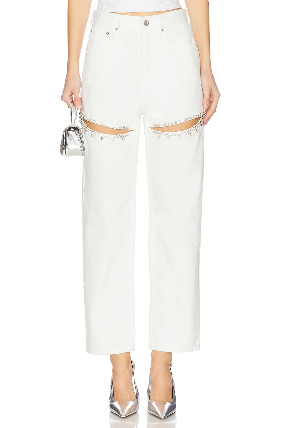 - 100% cotton - Made in China - Dry clean only - Zip fly with button closure.5-pocket styling and front cut-outs with embellished rhinestone trim - Midweight denim fabric.16.5" at the knee narrows to 14.5" at the leg opening - Revolve Style No. ARRE-WJ3 - Manufacturer Style No. 0000P01335