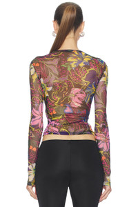 HOTFIX PRINTED TULLE LONG SLEEVE TOP