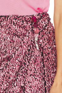 - Self: 84% viscose 12% polyamide 4% elastane Lining: 85% polyamide 15% elastane - Dry clean only - Fully lined - Hidden side zipper closure - Sequin embellished fabric - Item not sold as a set - Skirt measures approx 13.5" in length - Revolve Style No. ARFE-WQ63 - Manufacturer Style No. FW25AWSK0074FA01