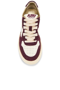 - Leather and glitter suede upper with rubber sole - Lace-up front - Padded tongue and collar with stitch logo detail - Autry logo embroidered leather patch at tongue and side panel - Autry logo at back counter - Perforated toe - Revolve Style No. ATRY-WZ36 - Manufacturer Style No. AULW-TA05