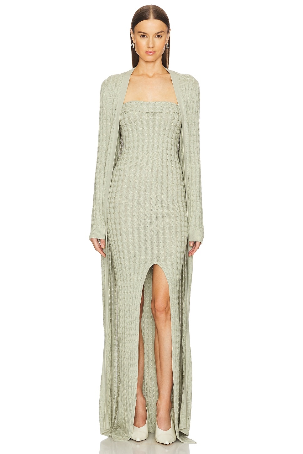 - 55% silk 45% viscose - Made in China - Dry clean only - Open style - Slinky knit fabric - Item not sold as a set - Revolve Style No. AYAR-WK18 - Manufacturer Style No. AMFW2425