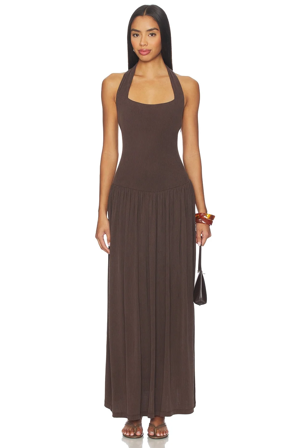 - 100% Cotton - Machine wash - Unlined - Hidden side zipper closure - Halterneck - Ribbed fabric - Revolve Style No. AYAR-WD125 - Manufacturer Style No. AMPF2524