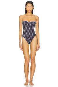 - 83% polyester 17% elastane - Hand wash cold - Adjustable shoulder straps - Ruffled trim - Midweight swimwear fabric - Revolve Style No. BANH-WX286 - Manufacturer Style No. 2523603PNT