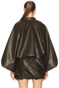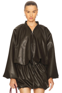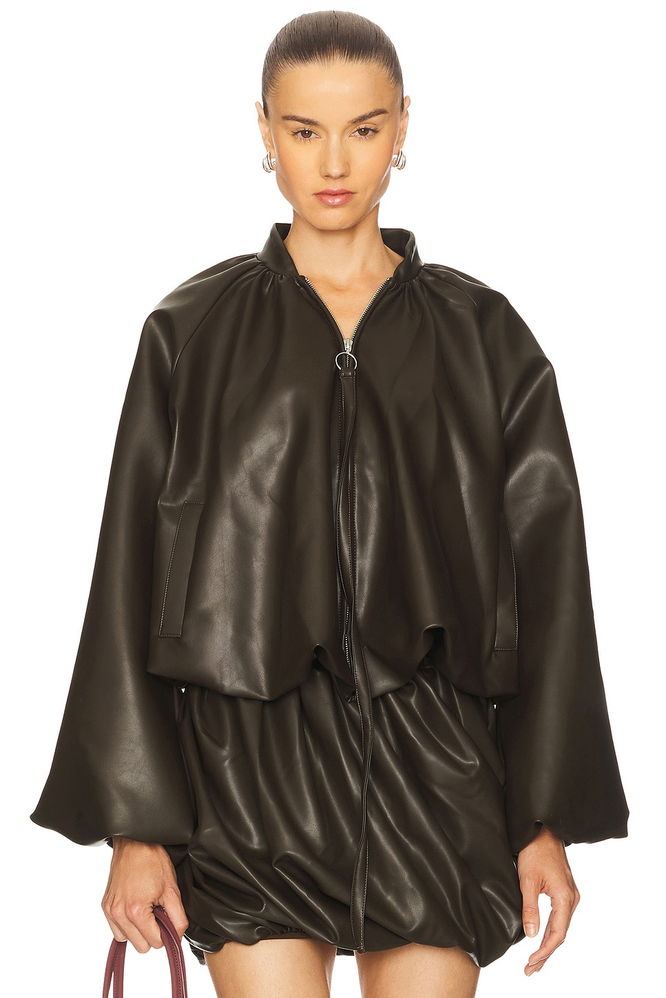 - Self 1: 92% polyester 8% spandex Self 2: 100% polyurethane Lining: 50% cupro 50% viscose - Hand wash - Hidden front zipper closure with pull-tab - Side seam pockets - Faux leather fabric with bubble hem - Item not sold as a set - Revolve Style No. BAFE-WO2 - Manufacturer Style No. BFPF25O04