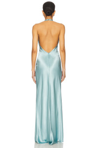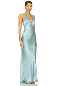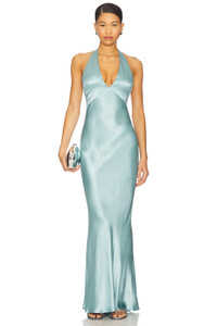 - 100% viscose - Dry clean only - Partially lined at bust - Hidden back zip closure - Halterneck styling with S-hook closure - Heavyweight charmeuse fabric - Revolve Style No. BECA-WD750 - Manufacturer Style No. W25-12832