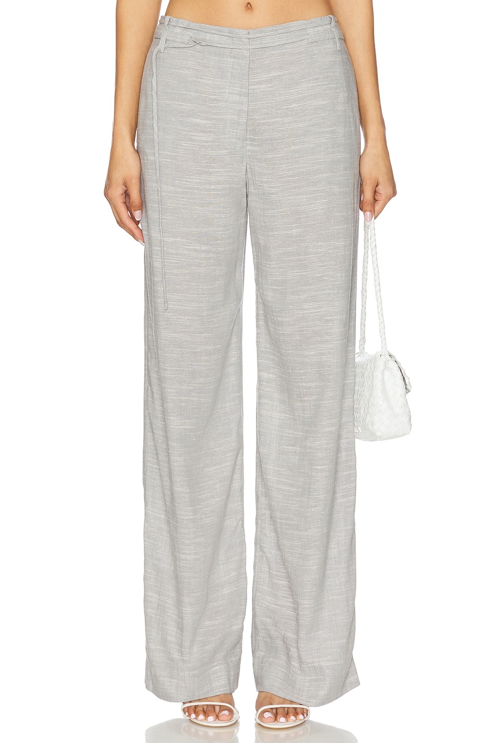 - Self: 80% rayon 20% linen Lining: 100% cotton - Made in China - Dry clean only - Zip fly with button closure - Integrated waist belt - Side slant pockets - Linen fabric Item not sold as a set.20" at the knee breaks to 25" at the leg opening - Revolve Style No. BECA-WP29 - Manufacturer Style No. A25-40543