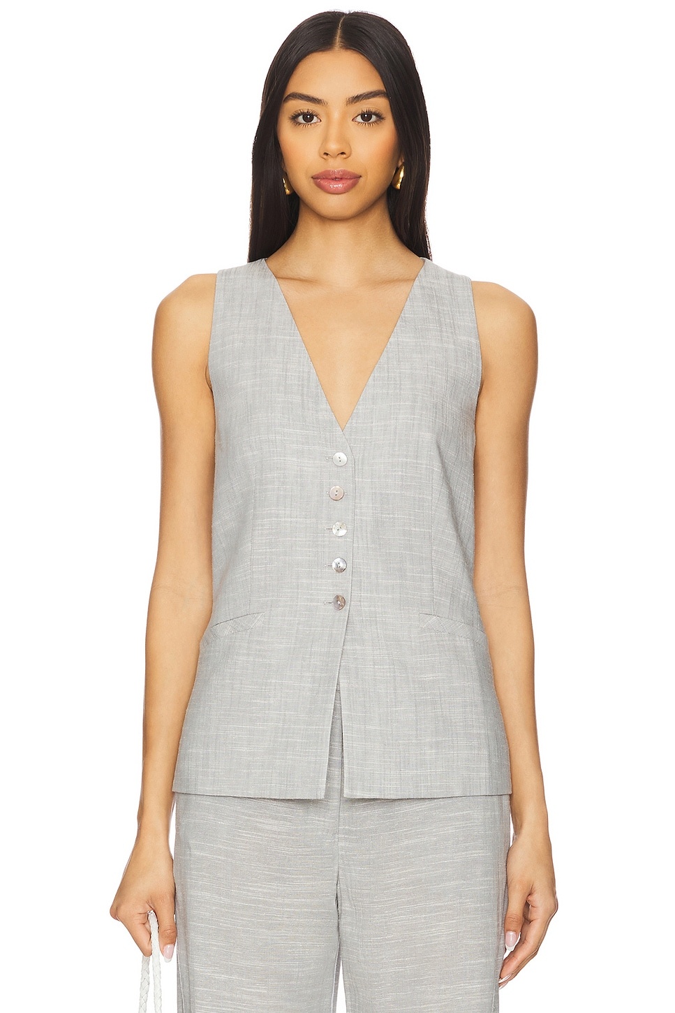 - Self: 80% rayon 20% linen Lining: 100% cotton - Made in China - Dry clean only - Front button closure - Dual faux welt pockets at front - Linen fabric - Item not sold as a set - Revolve Style No. BECA-WS146 - Manufacturer Style No. A25-21538