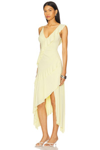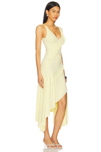 - Self: 93% viscose 7% elastane Lining: 95% polyester 5% elastane - Machine wash - Fully lined - Pull-on styling - Tiered ruffle detailing - Asymmetrical hem - Midweight jersey fabric - Revolve Style No. BECA-WD704 - Manufacturer Style No. A25-12647