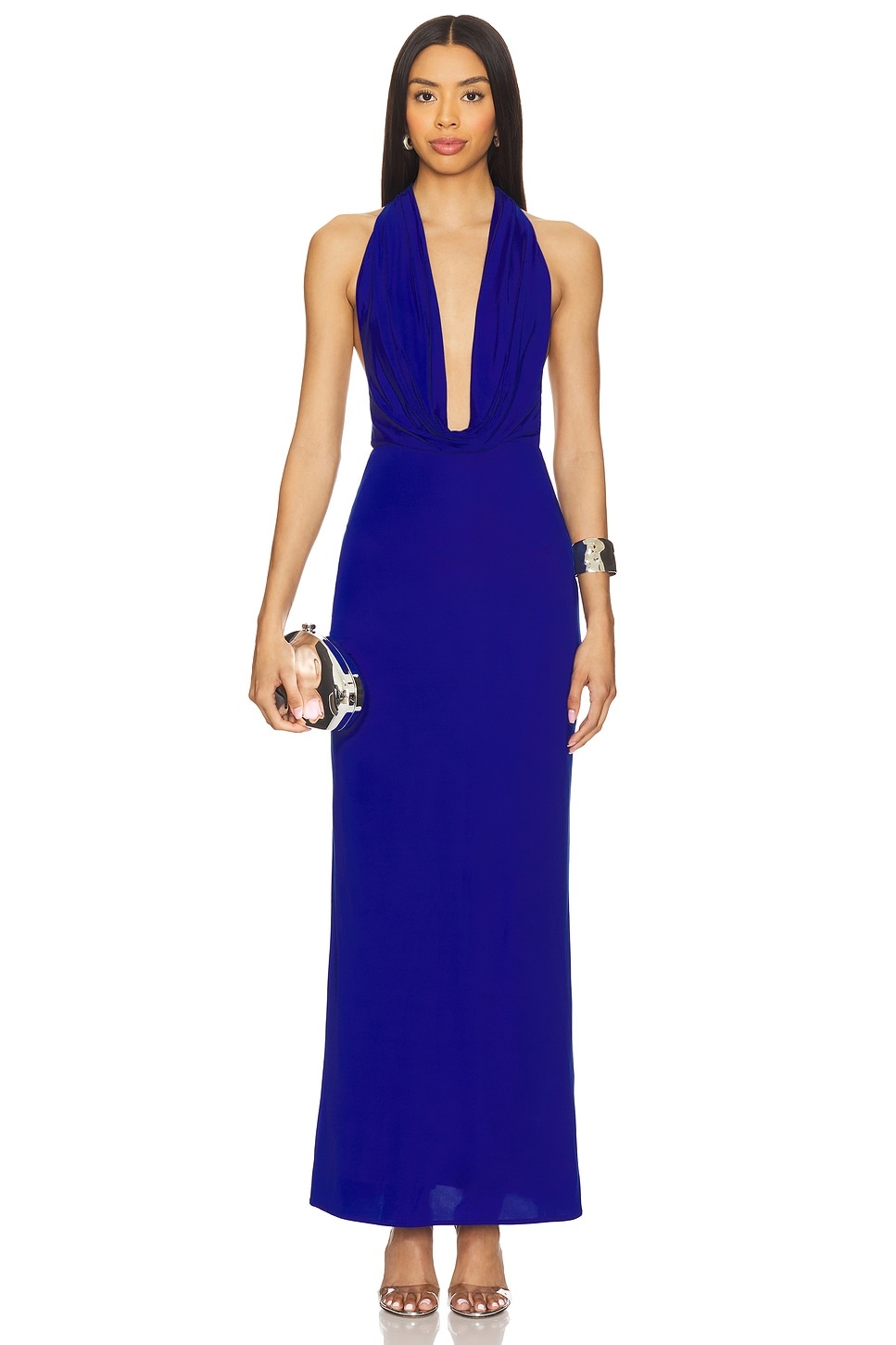 - self: 87% polyester 13% elastane Lining: 95% polyester 5% elastane - Hand wash cold - Fully lined - Plunging neckline with draped cowlneck detail - Open back - Midweight jersey fabric - Revolve Style No. BECA-WD717 - Manufacturer Style No. A25-12705