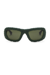 - Acetate frame with square lenses and signature intrecciato pattern - Made in Japan - Lens measures approx 56mm - Bridge measures approx 19mm - Arm measures approx 130mm - Hard case and cleaning cloth included - Revolve Style No. BOTT-MG18 - Manufacturer Style No. BV1303S-008