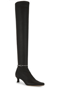 - Leather upper with leather sole - Slip-on styling - Pointed toe - Kitten heel - Leather insole - Removable metal cord at ankle - Approx 40mm/ 1.5 inch heel Approx 533mm/ 21 inch shaft Shaft measures approx 13" in circumference - Revolve Style No. BFAR-WZ126 - Manufacturer Style No. MWFBO070LL035BR054PL