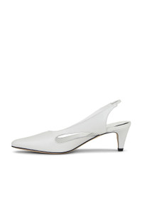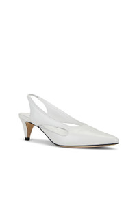 - Leather upper with leather sole - Sling-back styling - Leather footbed and lining - Pointed toe - Approx 57mm/ 2.25 inch heel - Revolve Style No. BFAR-WZ122 - Manufacturer Style No. MWFHC058CL034WH025PL