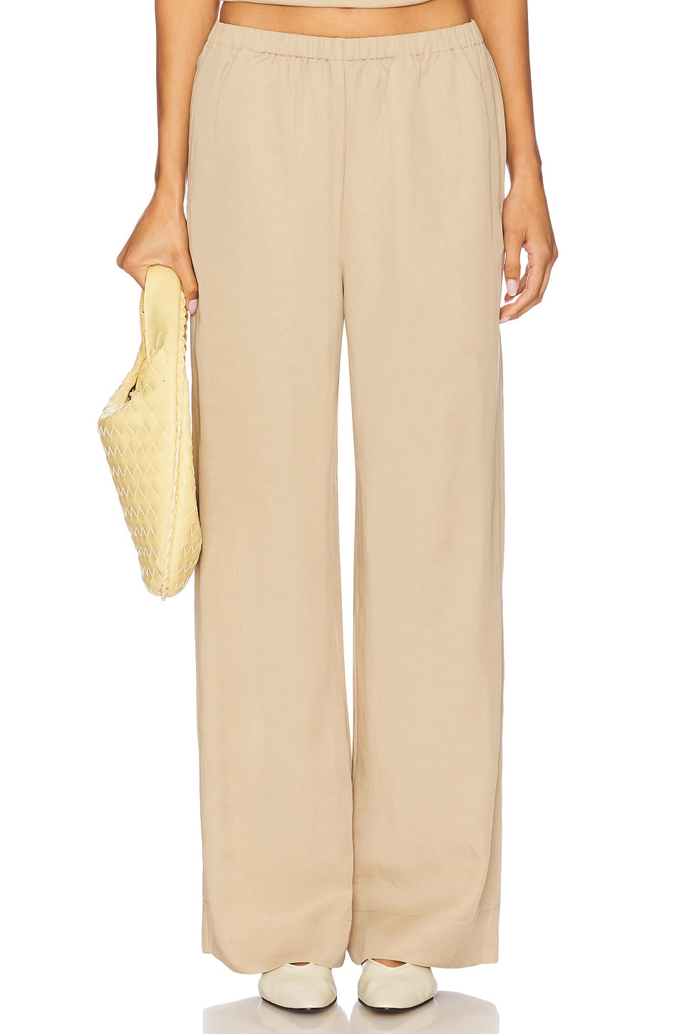 - 83% lyocell tencel 17% linen - Machine wash - Pull-on styling with elastic waistband - Side seam pockets - Lightweight twill fabric - Item not sold as a set.24" at the knee narrows to 22" at the leg opening - Revolve Style No. BYMA-WP17 - Manufacturer Style No. 103568