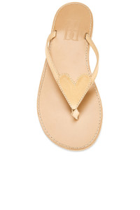 - Leather upper with rubber sole - Slip-on styling - Leather footbed and lining - Thong design with heart detail - Revolve Style No. BYMA-WZ4 - Manufacturer Style No. 103395