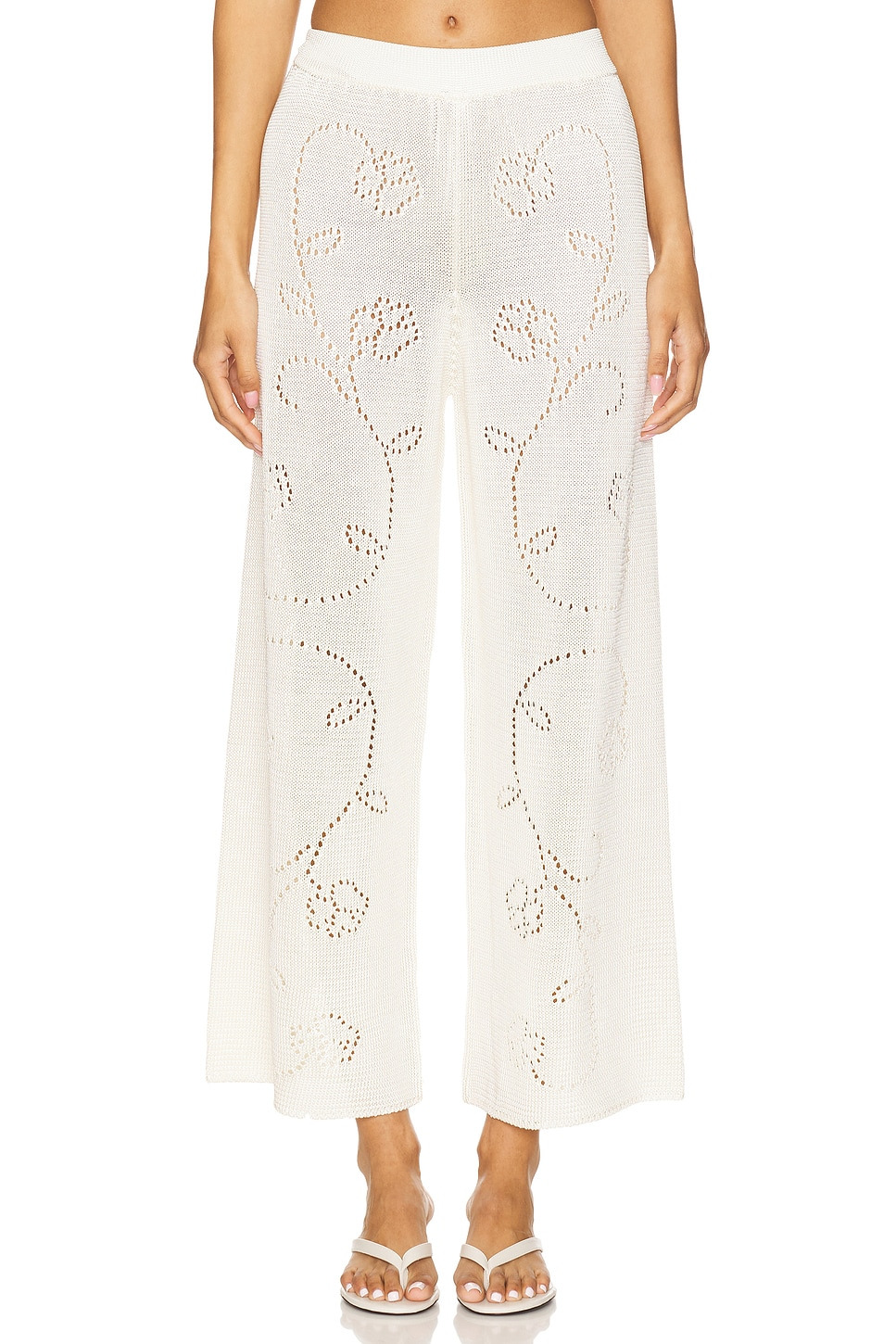 - 100% viscose - Dry clean only - Pull-on styling with elastic waistband - Perforated floral detailing - Midweight knit fabric Garment is made with a semi-sheer fabric, undergarments can show through - Item not sold as set.25" at the knee and 25" at the leg opening - Revolve Style No. CDEL-WP1 - Manufacturer Style No. CDM-PP006