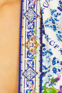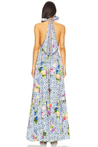 - 100% cotton - Dry clean only - Unlined - Hidden back zipper closure - Self-tie halterneck - Side seam pockets - Midweight poplin fabric with stone embellished trim - Neckline to hem measures approx 57" in length - Revolve Style No. CILL-WD438 - Manufacturer Style No. 00033754-WALLWOND