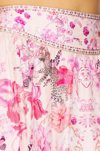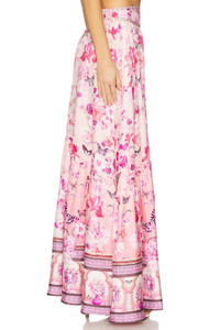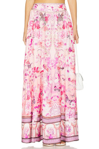 - 100% silk - Made in India - Dry clean only - Unlined - Pull-on styling with elastic waistband Side seam pockets - Lightweight satin fabric with rhinestone embellished waistband - Item not sold as set - Skirt measures approx 40" in length - Revolve Style No. CILL-WQ40 - Manufacturer Style No. 00034484-BOTANOVL