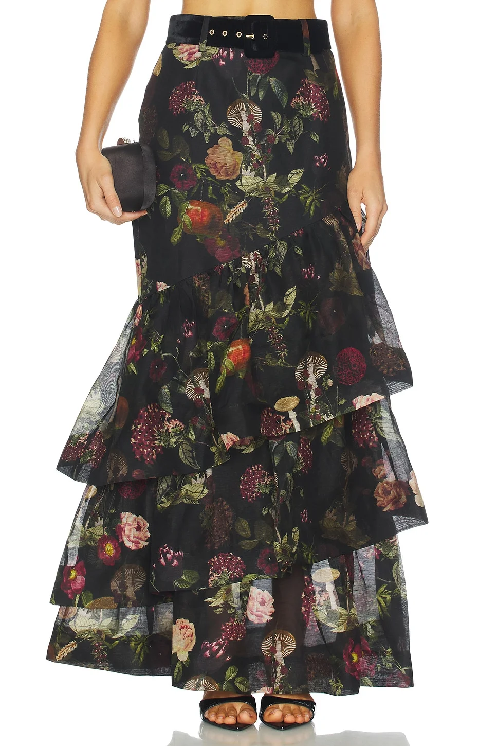 - Shell: 52% Linen 48% Silk Lining: 100% Viscose - Dry clean only - Hidden side zipper with hook and eye closure - Fully lined - Item not sold as a set - Skirt measures approx 43" in length - Revolve Style No. CCAR-WQ14 - Manufacturer Style No. 2026SLO