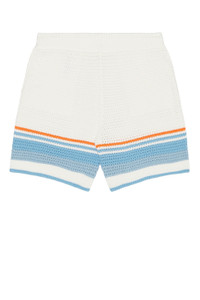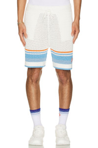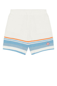 - Self 1: 100% polyester Self 2: 95% viscose 5% polyester - Hand wash - Elasticized waistband with drawstring closure - Logo detail at lower front - Side slit pockets - Crochet knit fabric - Item not sold as a set - Shorts measure approx 20" in length - Revolve Style No. CBLN-MF33 - Manufacturer Style No. MPF25-KW-1011-01