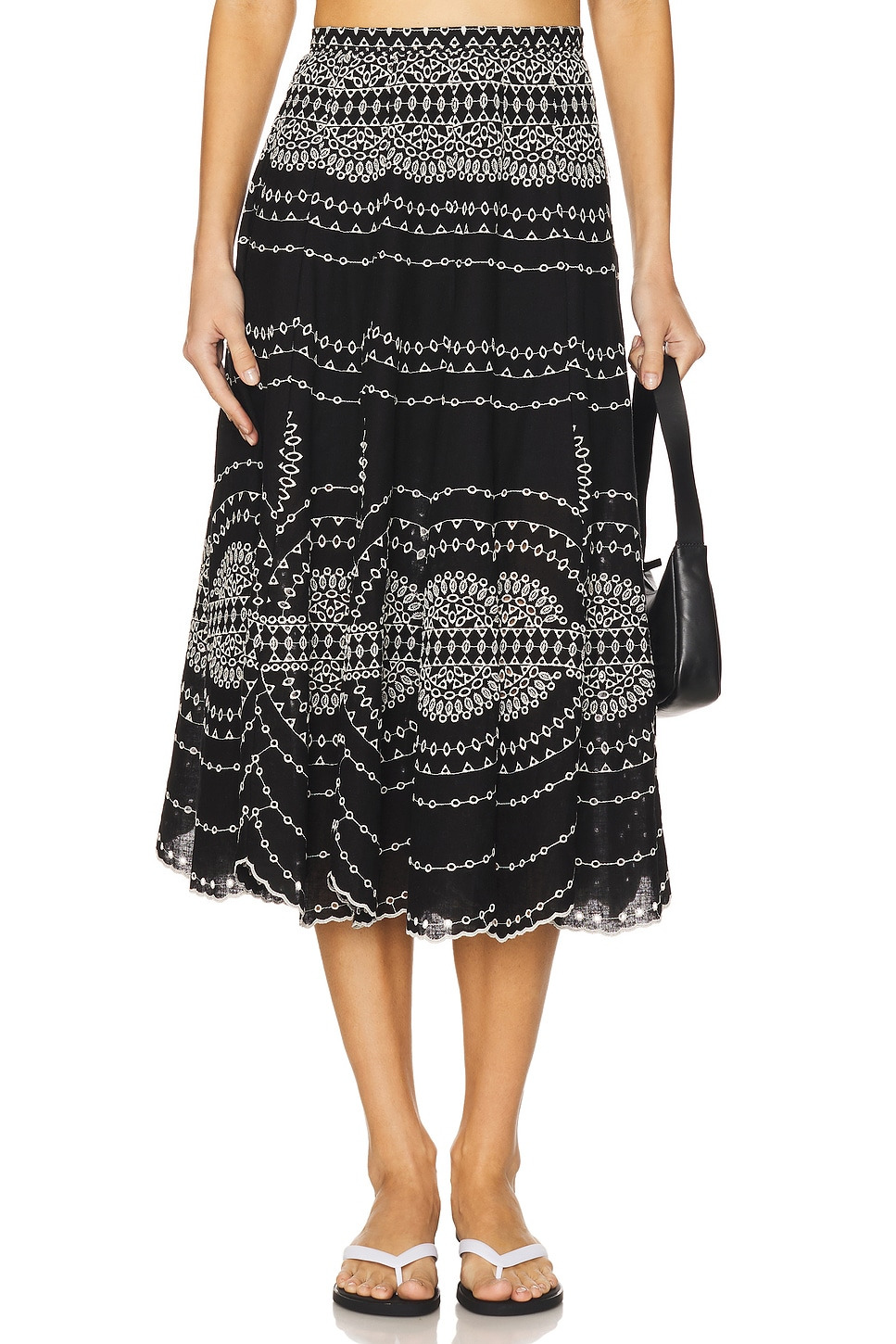 - 60% cotton 20% polyester 20% linen - Hand wash cold - Fully lined - Concealed side zipper with hook and eye closure - Eyelet design - Midweight linen fabric - Item not sold as a set - Skirt measures approx 30" in length - Revolve Style No. CRIB-WQ62 - Manufacturer Style No. 254401