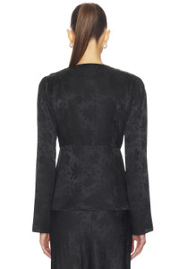 - 100% silk - Made in China - Dry clean - Front self-tie closure - Jacquard fabric - Revolve Style No. CIAR-WS27 - Manufacturer Style No. 20461257BLK