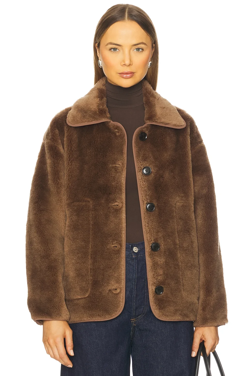 - Self: 100% wool sherpa Backing: 100% polyester Lining: 100% polyester - Dry clean - Exposed front button closure - Side slip pockets - Fully lined - Revolve Style No. CITI-WO135 - Manufacturer Style No. 5154