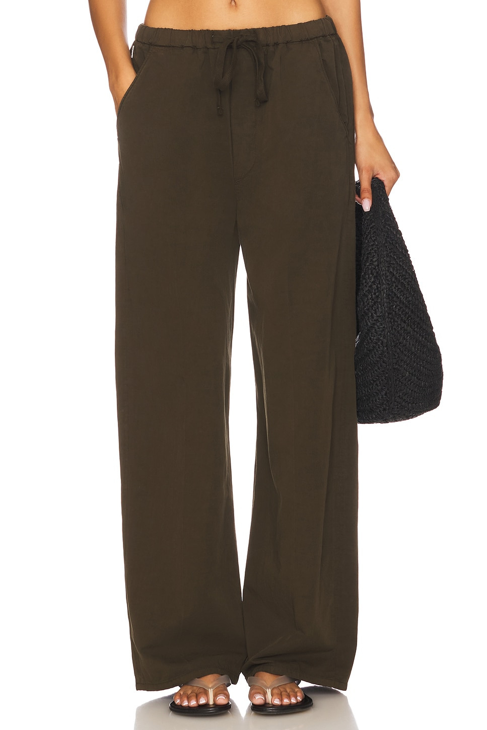 - 79% cotton 21% flax - Machine wash - Drawstring closure.3-pocket styling - Lightweight twill fabric.24" at the knee narrows to 22" at the leg opening - Revolve Style No. CITI-WP187 - Manufacturer Style No. 2186-1506