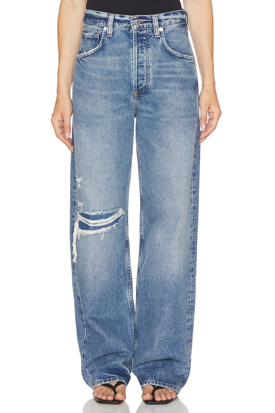 - 67% regenerative cotton 22% lyocell 11% post consumer recycled cotton - Machine wash - Button fly closure.5-pocket design - Logo patch at back waist - Denim fabric with distressing at front.22" at the knee narrows to 20" at the leg opening - Revolve Style No. CITI-WJ1980 - Manufacturer Style No. 2053C-3025