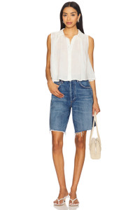 - 100% regenerative cotton - Machine wash cold - Button fly.5-pocket design - Contrast logo patch at back waistline - Midweight rigid denim fabric with intentional fading and raw-cut frayed hem - Shorts measure approx 19" in length - Revolve Style No. CITI-WF126 - Manufacturer Style No. 2118-1810
