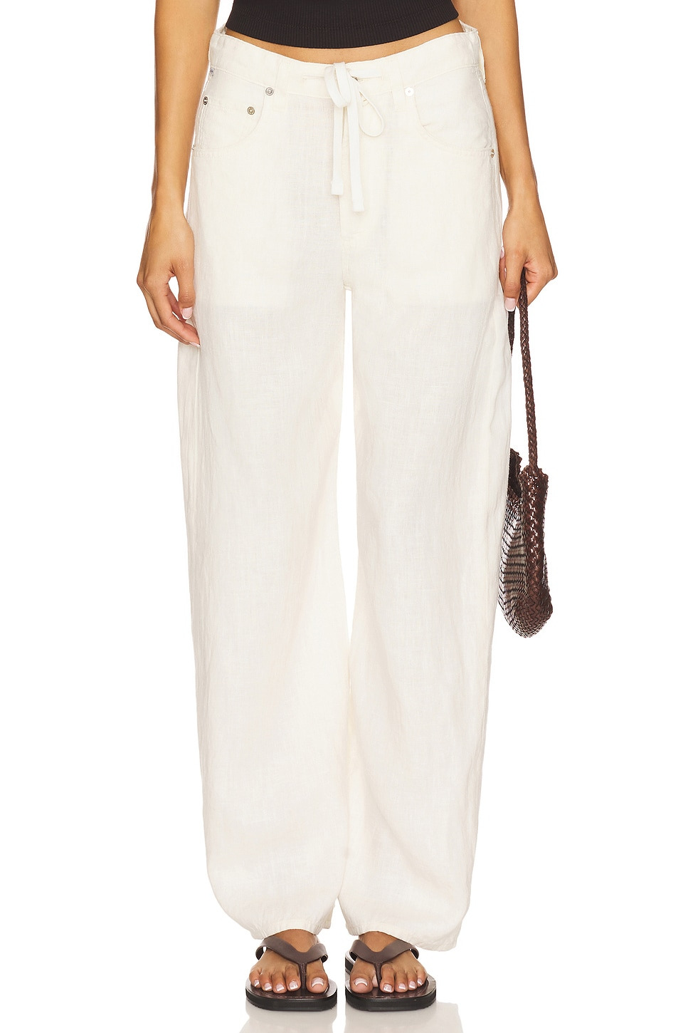 Brynn Drawstring Linen Trouser In Vanilla
