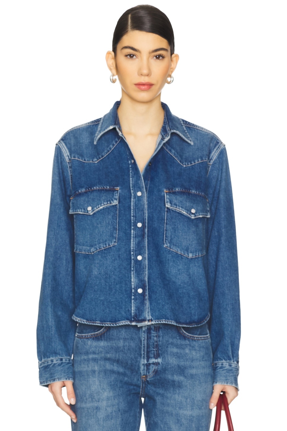 - 80% regenerative cotton 20% recycled cotton - Made in Turkey - Machine wash cold - Front snap button closures - Midweight rigid denim fabric with western design and cropped styling.2 front patch flap pockets with snap button closures - Snap button cuffs - Revolve Style No. CITI-WS335 - Manufacturer Style No. 9326-1812