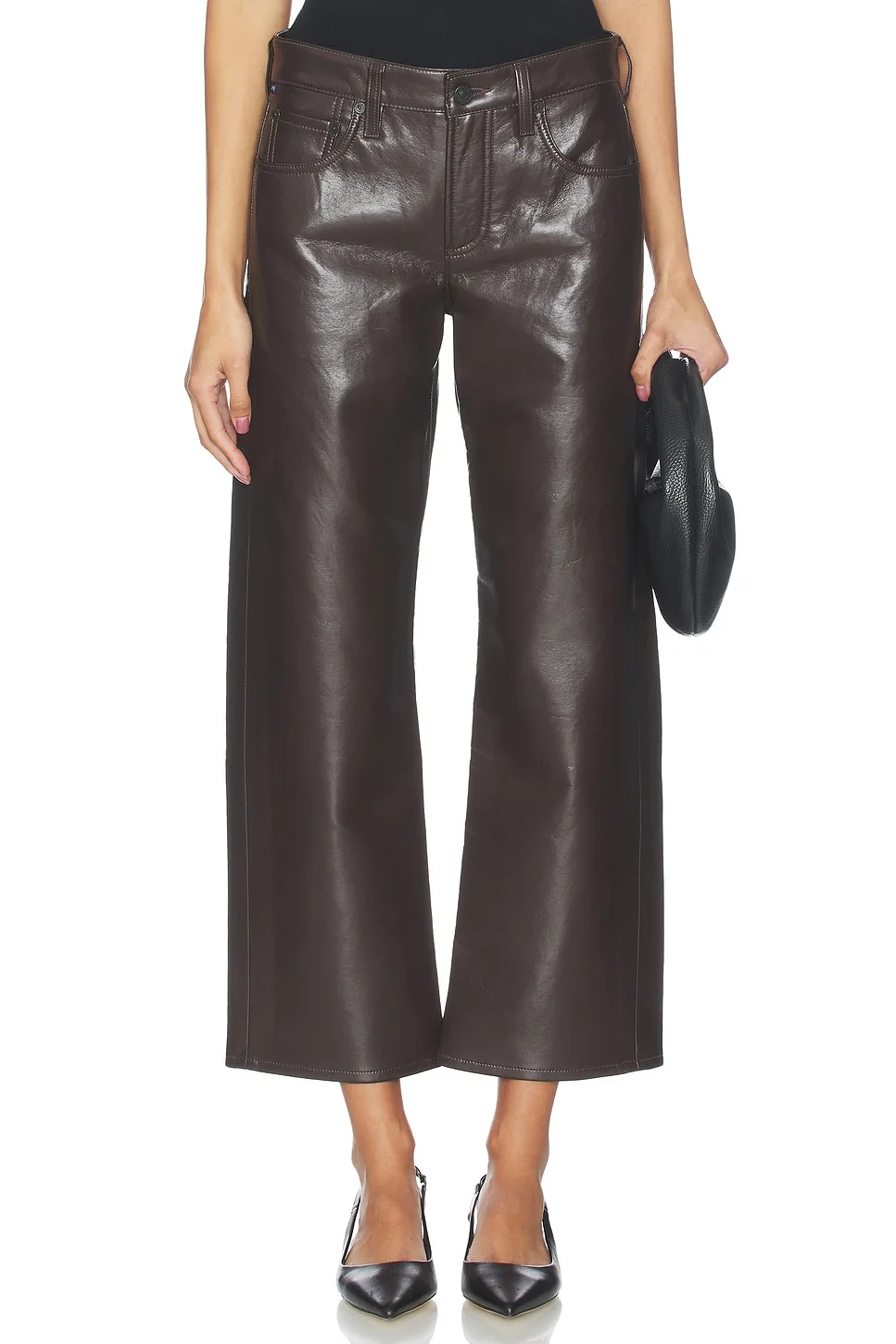 - Self: 50% recycled leather 30% polyurethane 10% viscose 10% polyester Lining: 95% polyester 5% elastane - Made in Turkey - Dry clean only - Straight zip fly with button closure.5 pocket styling - Smooth leather fabric.9" at the leg opening - Revolve Style No. CITI-WP213 - Manufacturer Style No. 2289-3013
